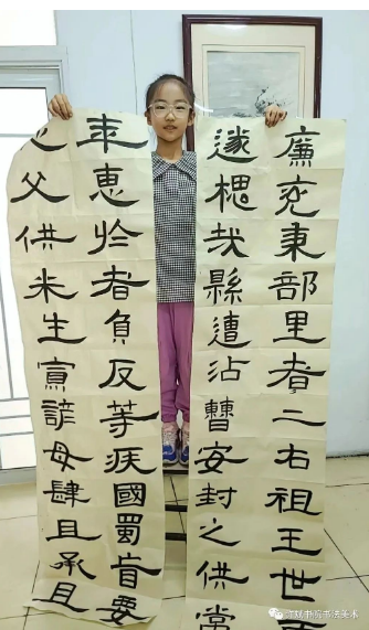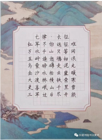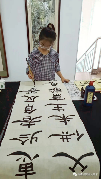 最后,在许斌书院里学习,我不仅学到了很多写字技巧,还了解了一些有名书法家的作品,同时很好的锻炼了我的耐性。我想跟许老师说:“谢谢您,您辛苦啦。”