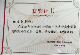 学习硬笔书法只用了不到一年时间,就转到了楷书。楷书要求结构严谨,重心平稳,写好一笔一画真的不是那么容易的事情,许老师总是很耐心的指导,一遍不行,就再多练几遍,每通过一个字,练好一个字,我都感觉无比开心。到现在,我从来没有带着失落的表情回家过。因为,我发现,只要认真对待每一个笔画,按照许老师的要求,就没有写不好的时候,几乎每次都能得到许老师的鼓励和表扬。不知不觉间,我发现了书法的乐趣,也爱上了书法和这浓厚的墨香味。