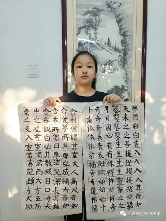 到现在我学书法已经有三年的时间了,在这段时间里,我逐渐体悟了书法笔墨之间的处处实情,学会了用书法来反省,来表达,我的字也随之越来越好。我要更加努力学习书法。